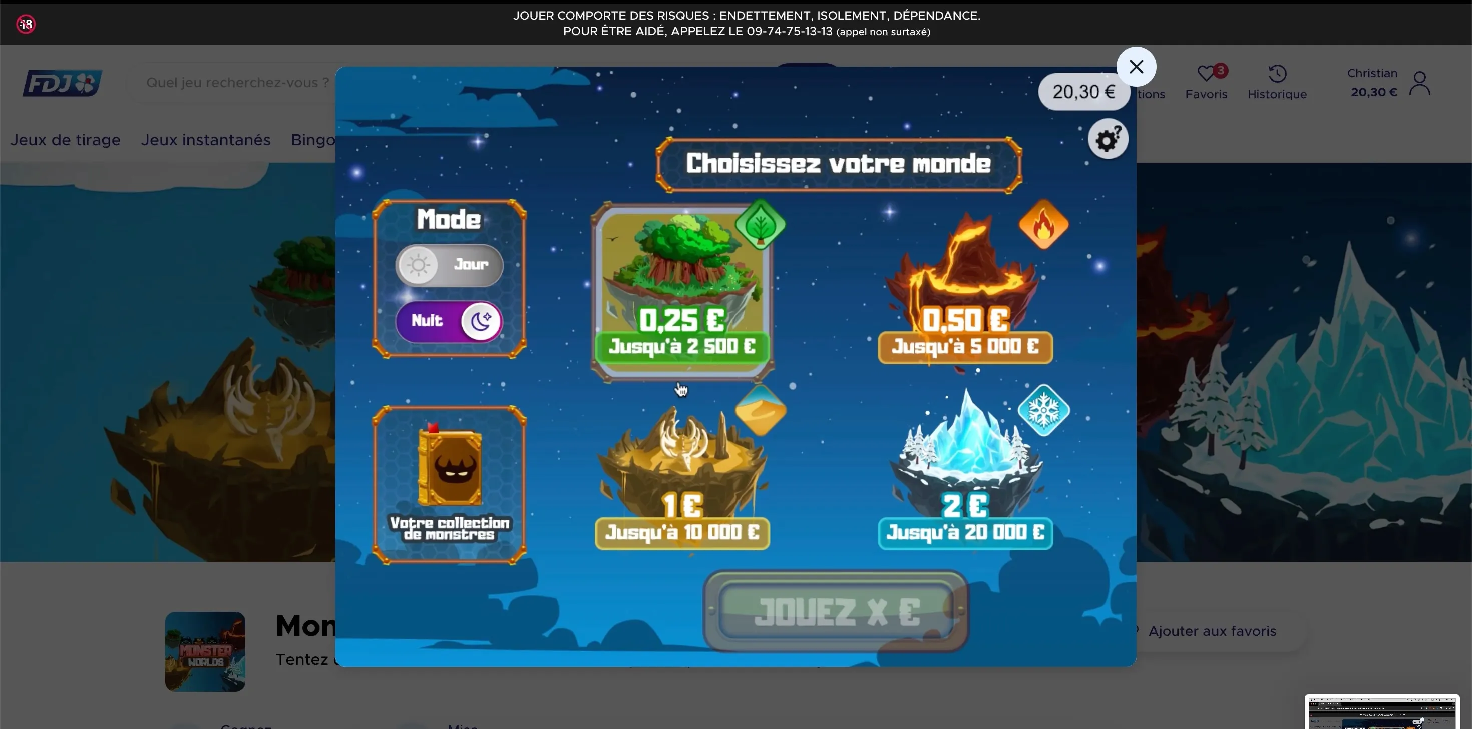 Analysons les gains potentiels de Monster Worlds et voyons si ce jeu mérite vraiment que vous vous y intéressiez ! Avec des lots à 20 000 €, ce n'est pas l'un des jeux les plus généreux de la gamme FDJ, ni même un des jeux avec un des tableaux de lots les plus variés. En revanche, vous avez une chance de gains qui est "bonne" par rapport à l'ensemble des jeux Illiko, mais légèrement inférieure à la moyenne pour les Exclues Web